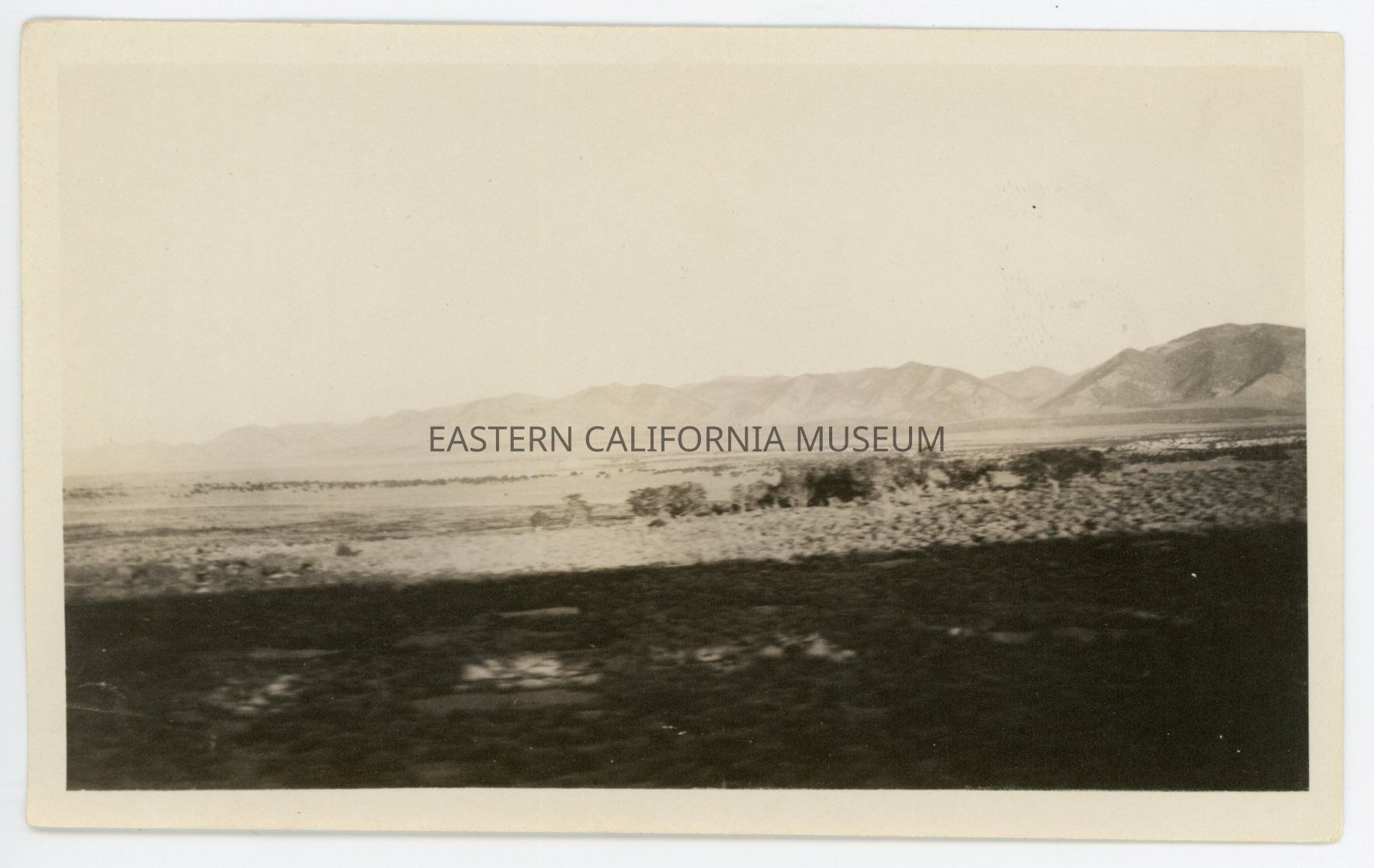 Photo of a desert landscape. There are mountains in the background. The location and date are almost certainly Deep Springs, 1925.Photograph Details