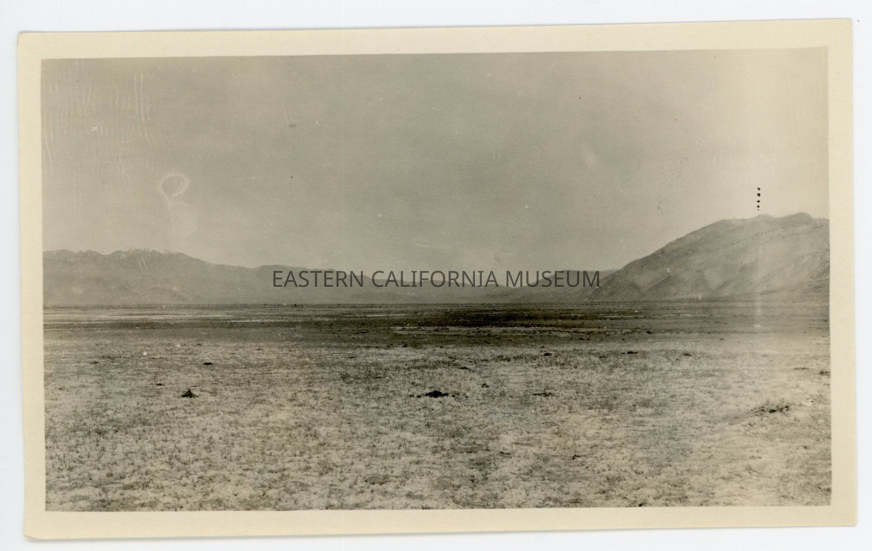Photo of a desert landscape with mountains in the background. The location and date are almost certainly Deep Springs, 1925.Photograph Details