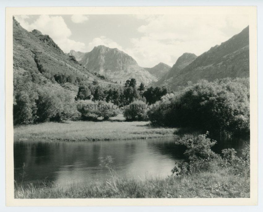 Photo of a placid creek surrounded by bushes and mountains. Labeled with, "Willard No. 775" in lower right corner.