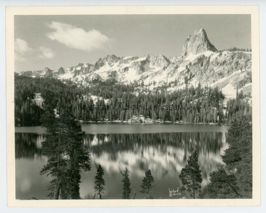 Photo of a lake with a unique mountain peak towering over it. Labeled with, "Willard No. 636" at the bottom center.