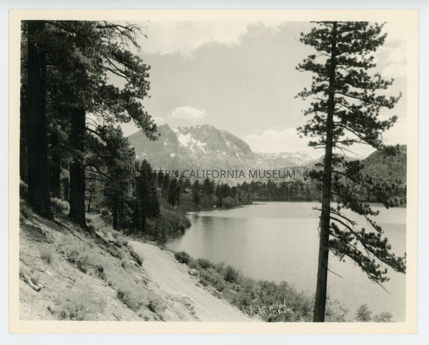 Photo of a dirt path or road beside a mountain lake. Labeled with, "Willard No. 641" at the bottom center. It is on textured paper.