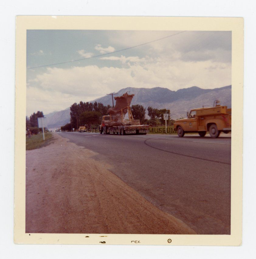 This photo is of the selected tuff [tufa] formation on a flatbed trailer.Collection