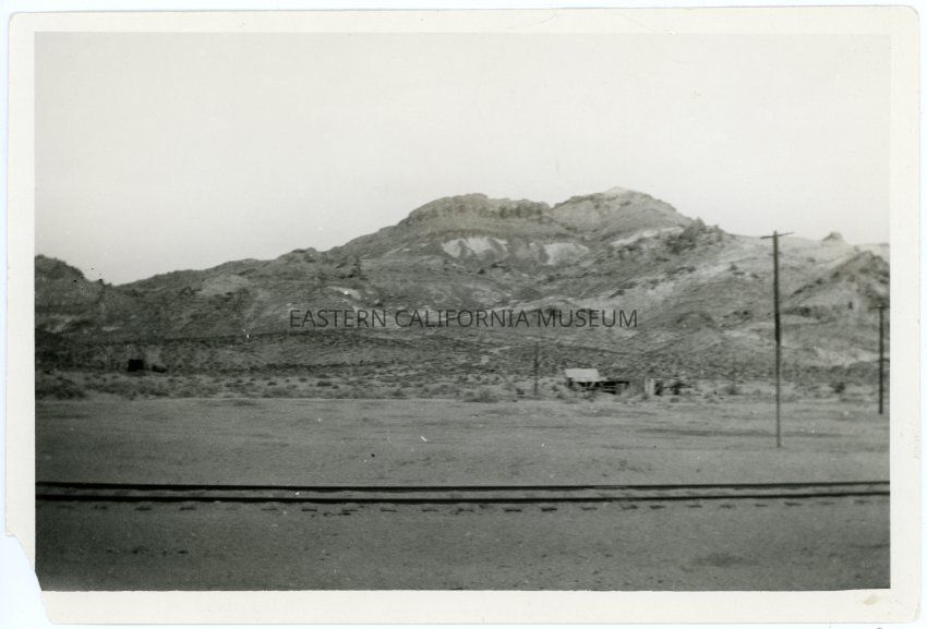 Photograph of Beatty, Nevada. There is railroad track in the foreground. From the back of the photograph: "Beatty, 1923"