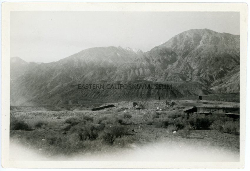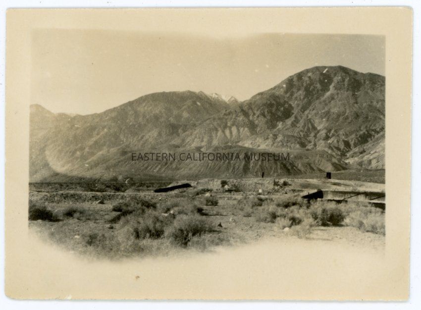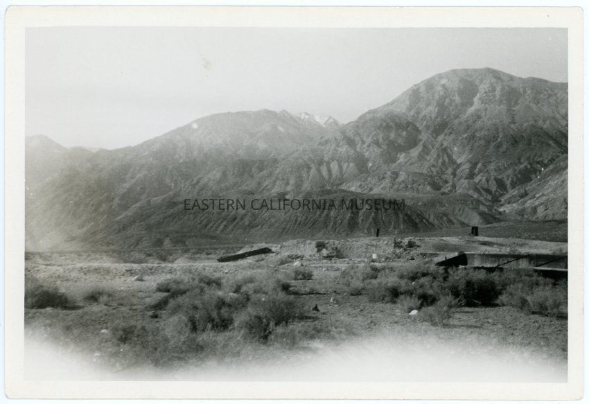 From the back of the photograph: "Remains of Old Borax Works, Saline Valley, November 1923" From the envelope: "Saline Valley Borax; Borax Works"