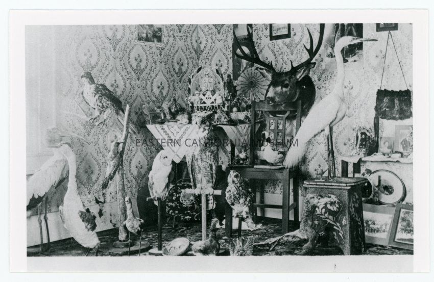 Copy of an interior photo of Mary Calvert's stuffed bird collection at her home in Aberdeen.