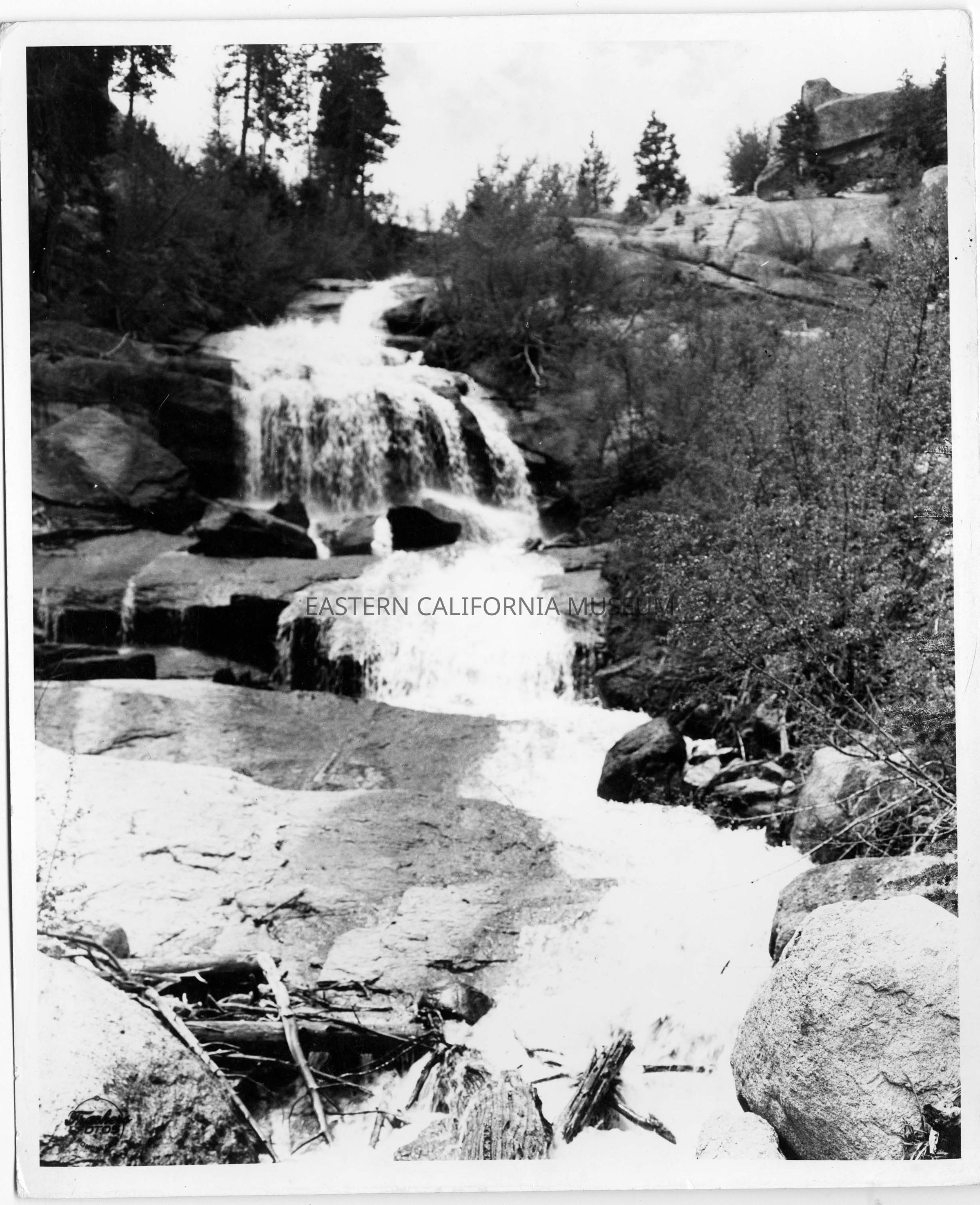 Photo of a creek or stream cascading down rocks (mini-waterfalls).