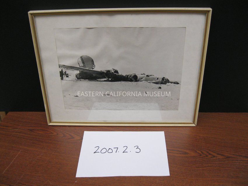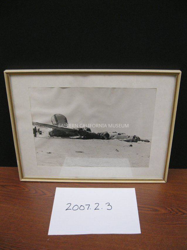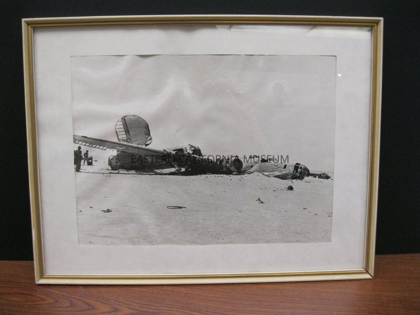 Framed photograph of a WWII B52 plane crash in the Libyan Desert.
