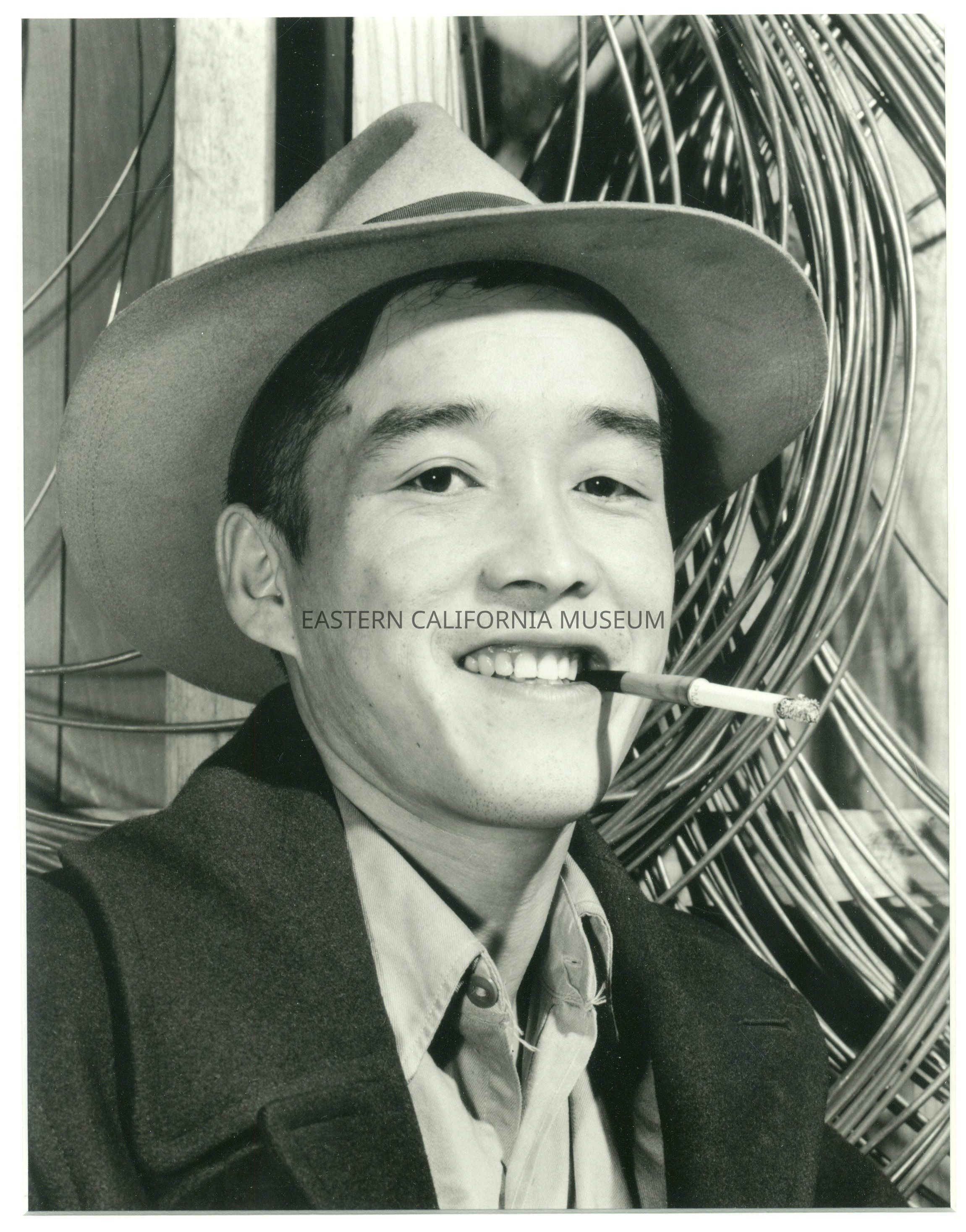 Framed photo taken by Ansel Adams of Yon Yamagami, an internee at Manzanar War Relocation Center.