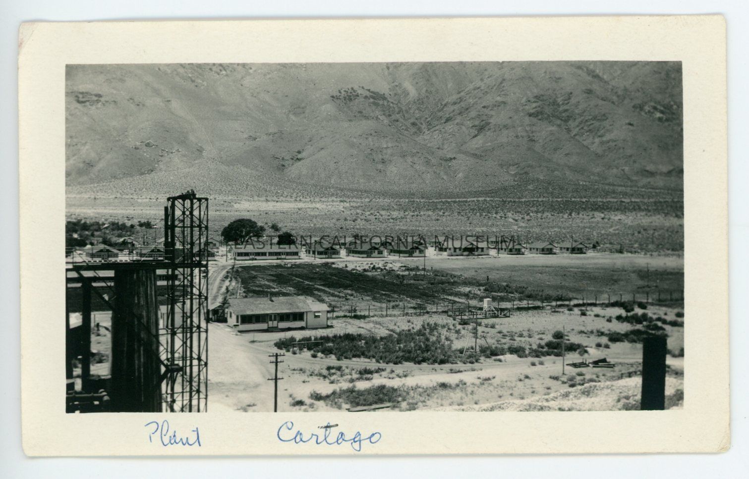 Photo captioned, "Plant, Cartago." It shows a scaffold-like tower on the left side and many buildings (houses?) in the center.