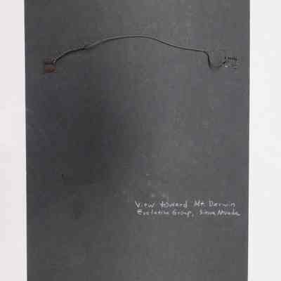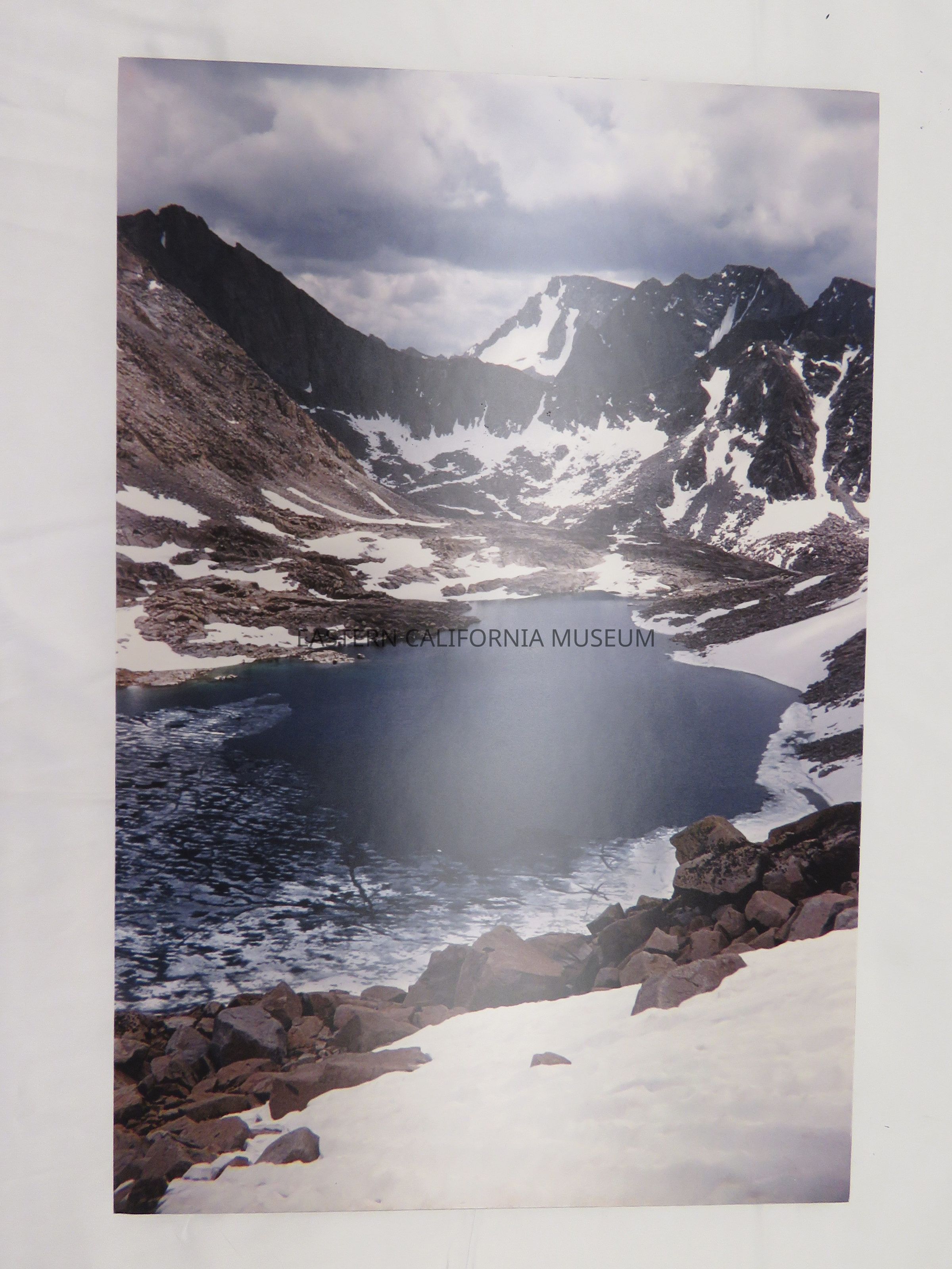 Color photo of a mountain lake looking toward Mt. Darwin, Evolution Group, in the Sierra Nevada. It was taken by Bob Alan Rowe.