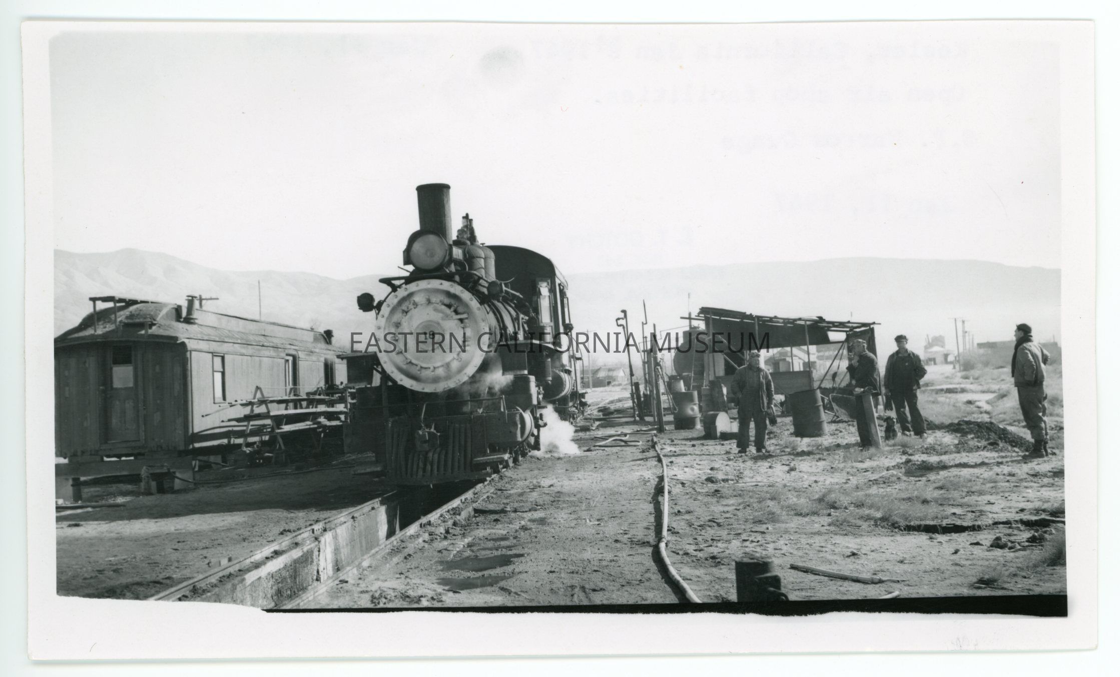 Typewritten on reverse: Keeler, California, Jan. 11, 1947 [date typed three times]. Open air shop facilities. S.P. Narrow Gauge.