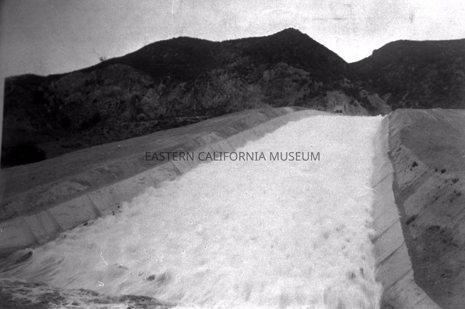 Photo of Owens River water rushing down the cascades, which was the terminus of the aqueduct into the San Fernando Valley.