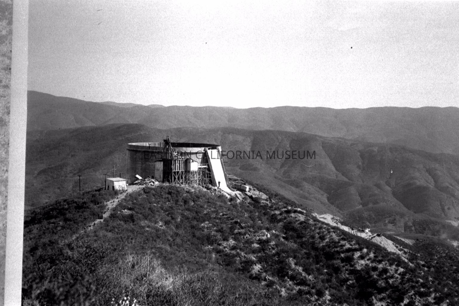 Photo of San Francisquito Power Plant Unit #1's surge chamber on top of a hill.