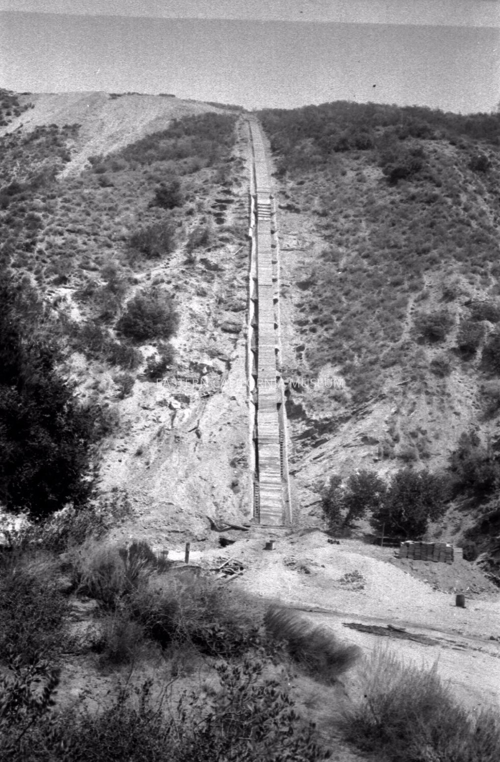 Photo of the site of San Francisquito Power Plant Unit #2 showing the penstock under construction.