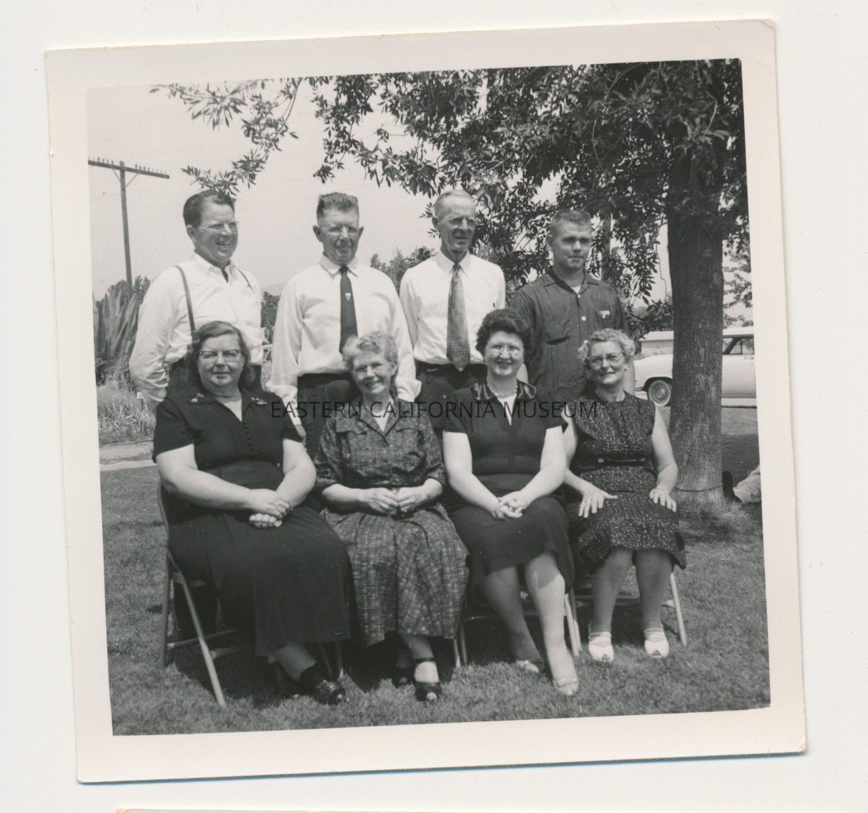 1991.13.1.95--Dale, Don, Claude, and David Drew (son WDD). Ora Drew Smith, Nellie Drew Hilliard, Ruth Drew LaRee, Helen Drew (WDD wife).