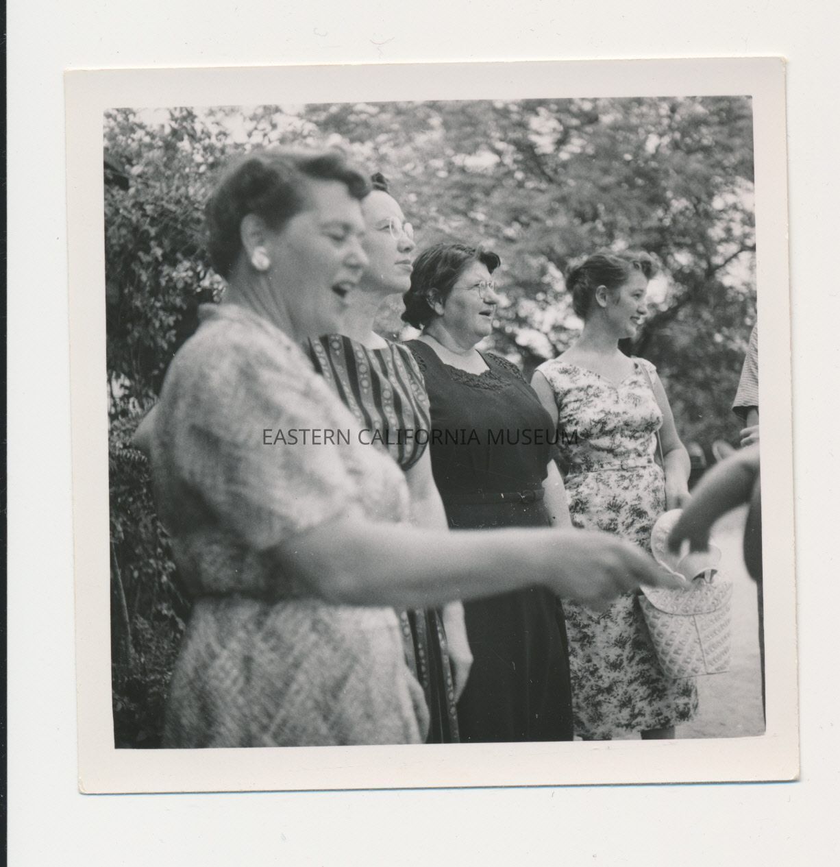 1991.13.1.98--Mary Drew (Don's wife), Zelma Drew (Dale's wife), Elodie Drew (Claude's wife), Clarisse Smith (Virgil Dale Smith's wife).