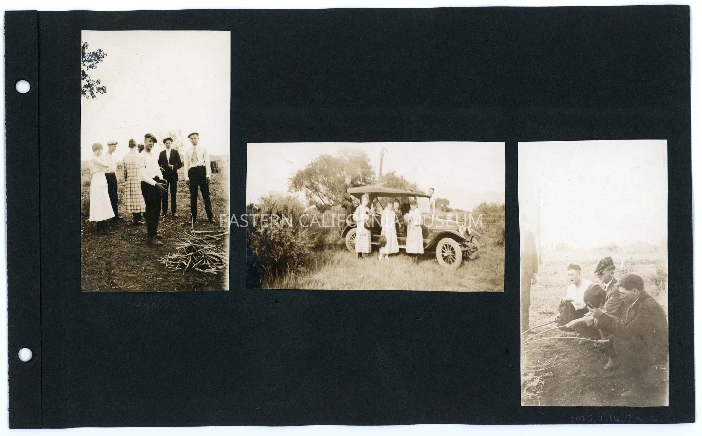 2025.7.16.7b--Photo of about eight young men and women posing with an early automobile in a field.