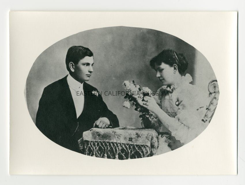 Copy of a studio portrait of a man and woman. They are identified on the envelope as Carl and Frieda Walters in 1898.