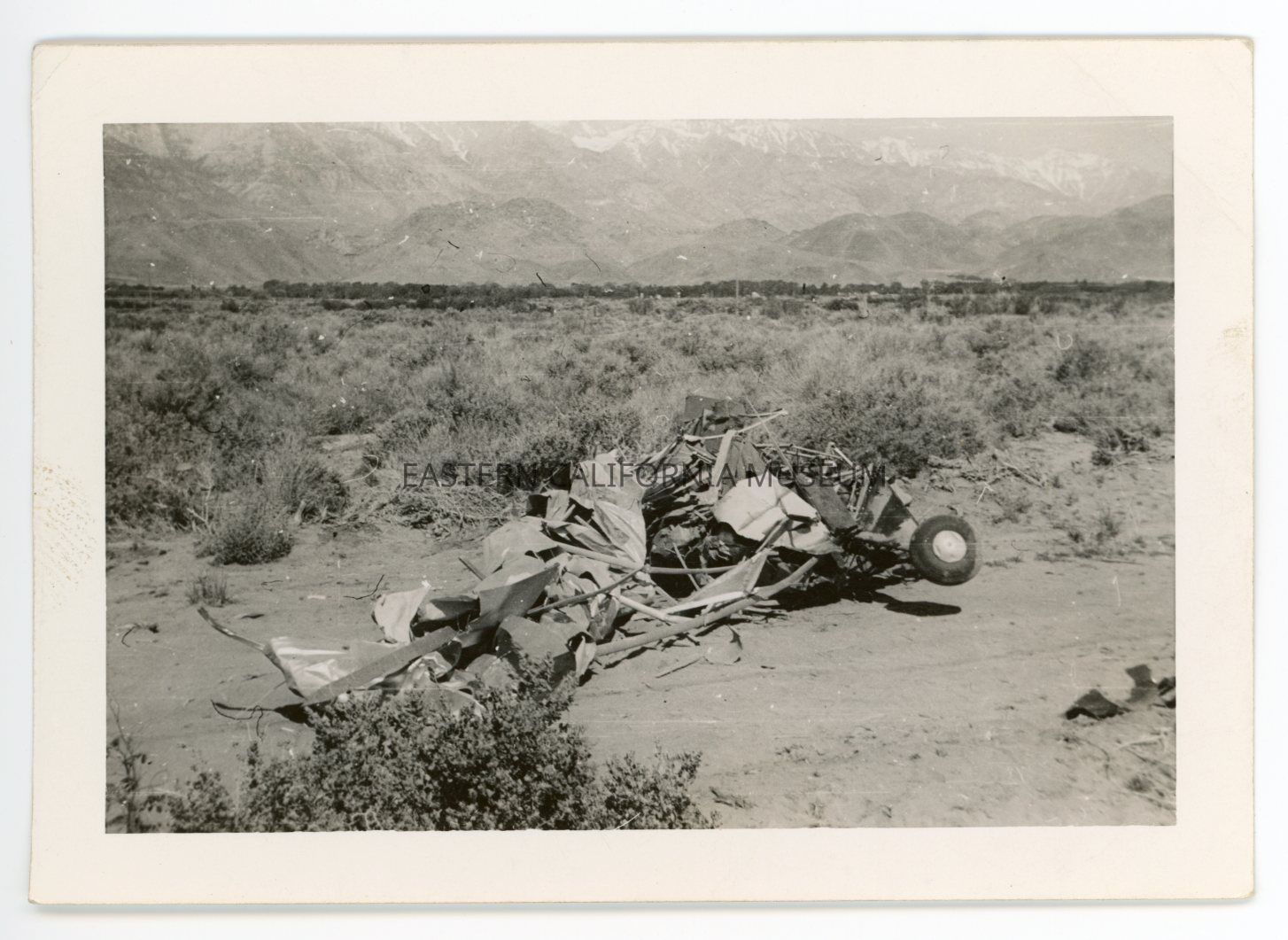 2000.5.2--Photo of the debris from a plane wreck with the Alabama Hills in the background.