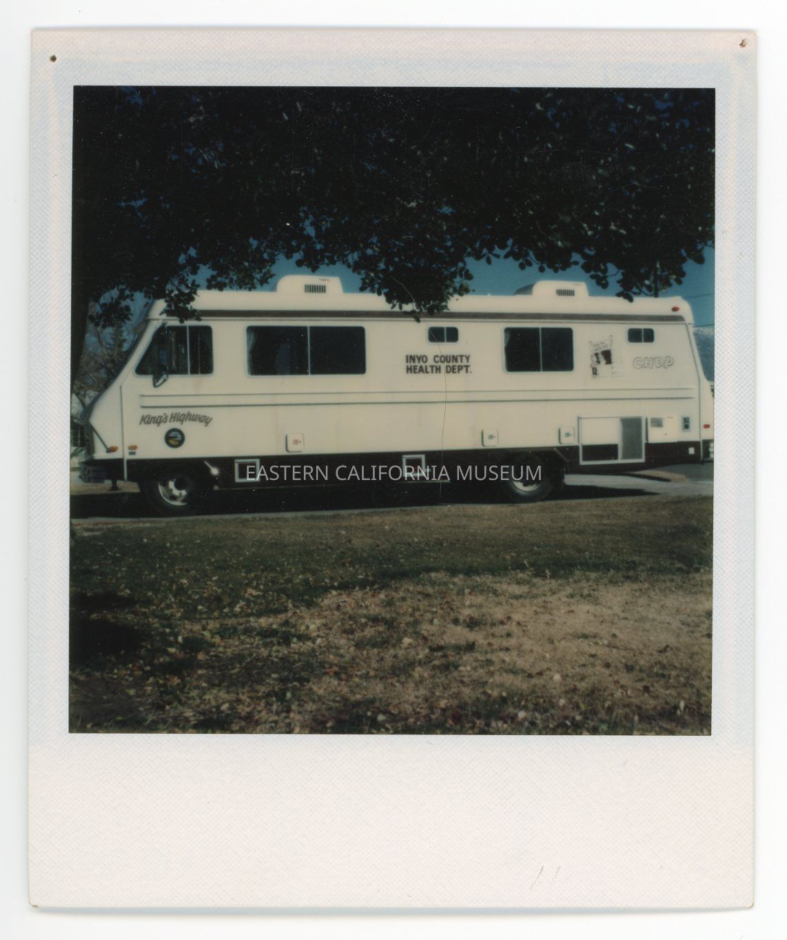1990.26.139d--Color Polaroid photo of the Inyo County Health Department Child Health and Disability Prevention Clinic van.
