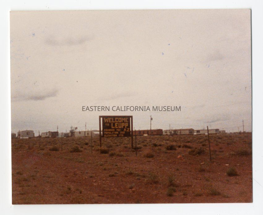 Color photo of the "Welcome to Leupp, AZ" sign.