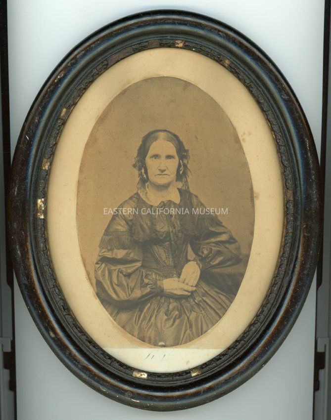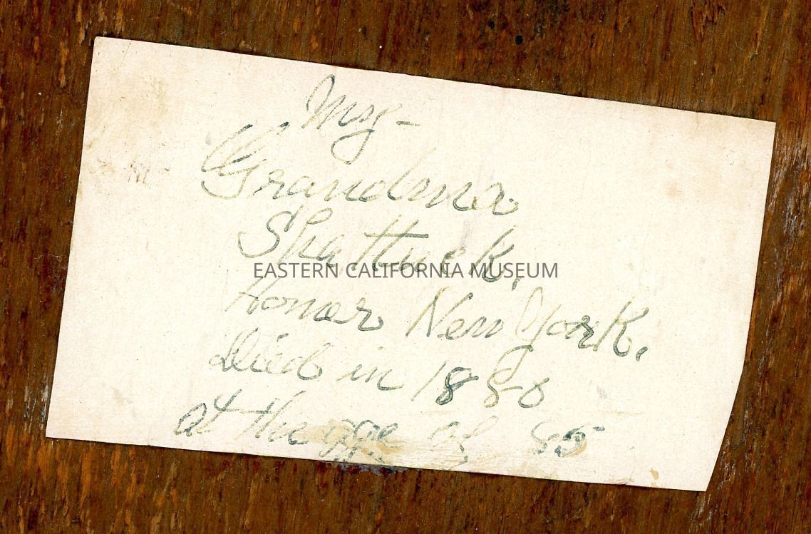 Photograph of a woman in an oval frame. Label beneath the photo says "Mother" and there is a label affixed to the back that says "My Grandma Shattuck. Honor, New York. Died in 1880 at the age of 85."