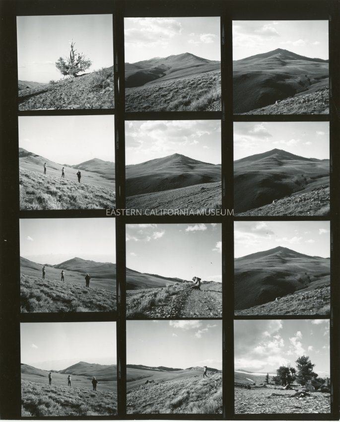 B&W contact sheet: 12 individual photos of Bristlecone Pine Forest area, landscape views