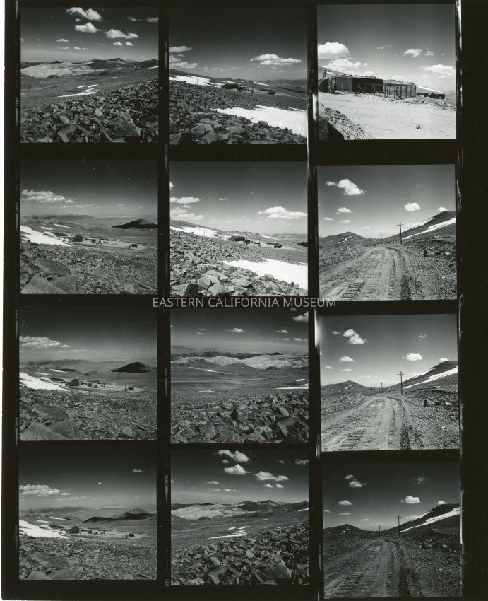 B&W contact sheet: 12 individual photos of Bristlecone Pine Forest area