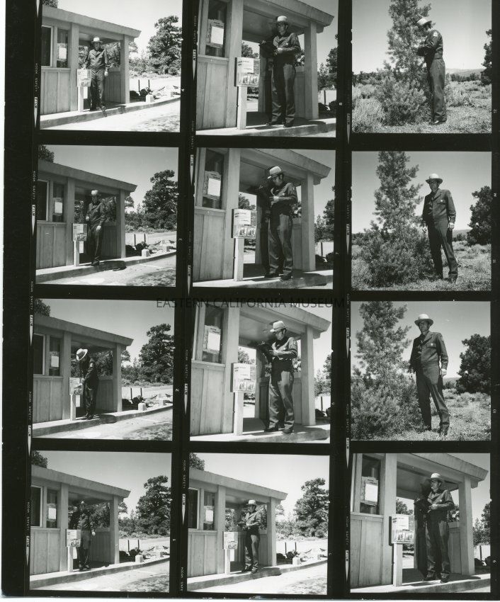 B&W contact sheet: 12 individual photos of Bristlecone Pine Forest
