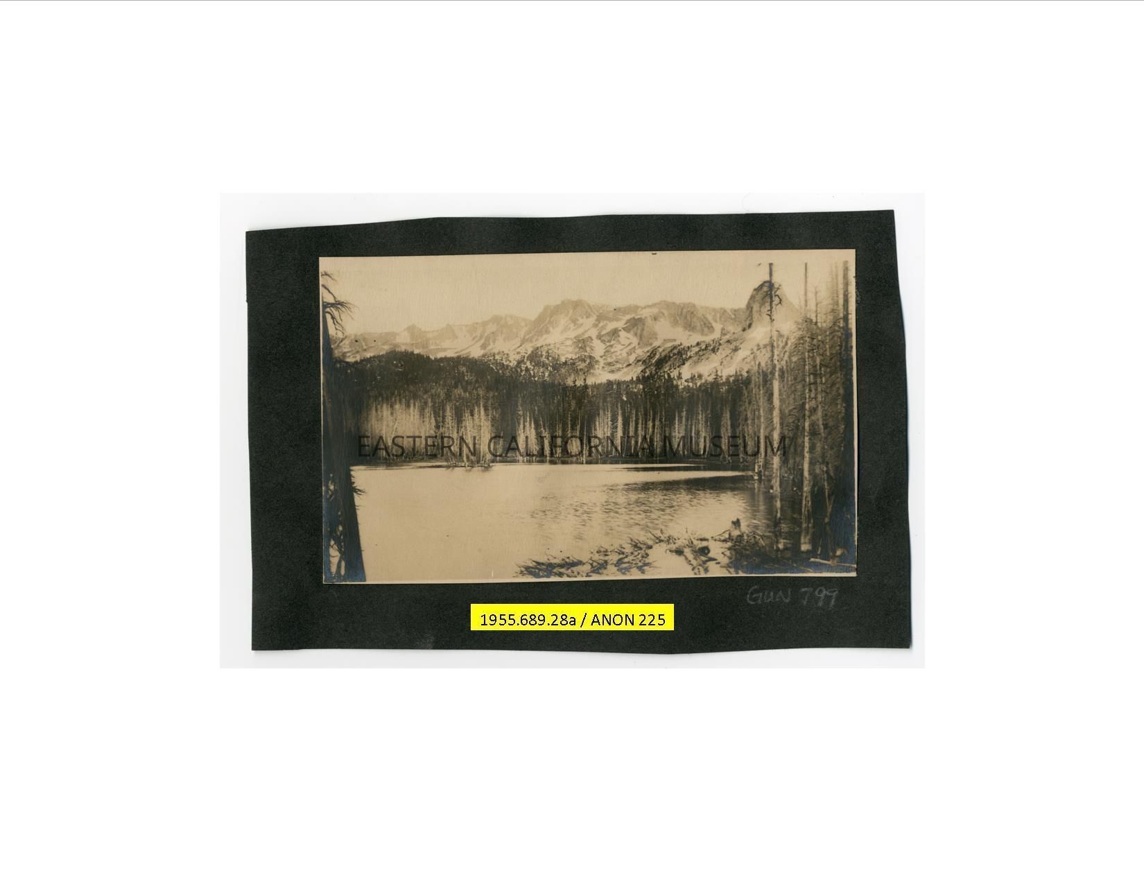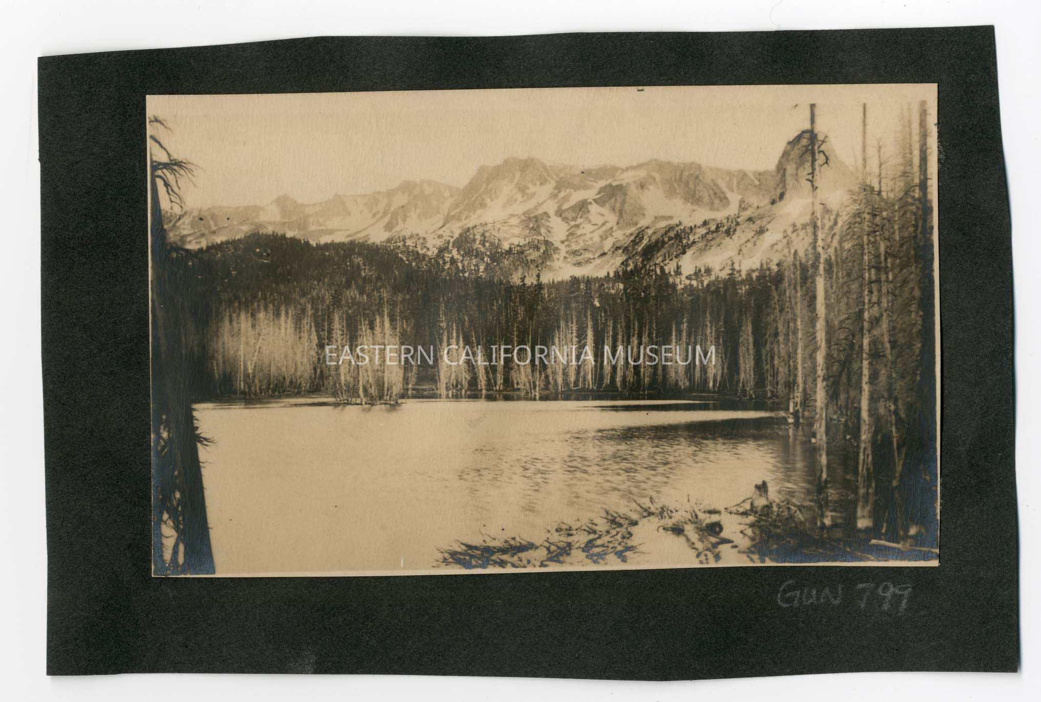 Photo of a lake surrounded by trees with mountains in the background. It has been identified as Lake Mary.