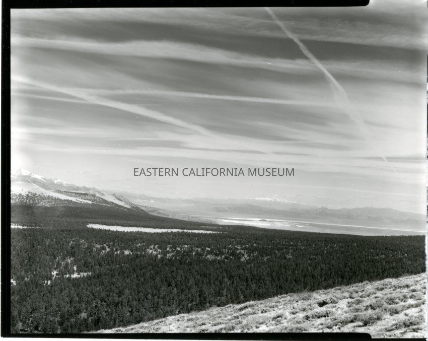 B&W glossy print: shot from summit of Bald Mountain, looking NW - Mono Lake in center of photo, Sweetwater Mountains in background