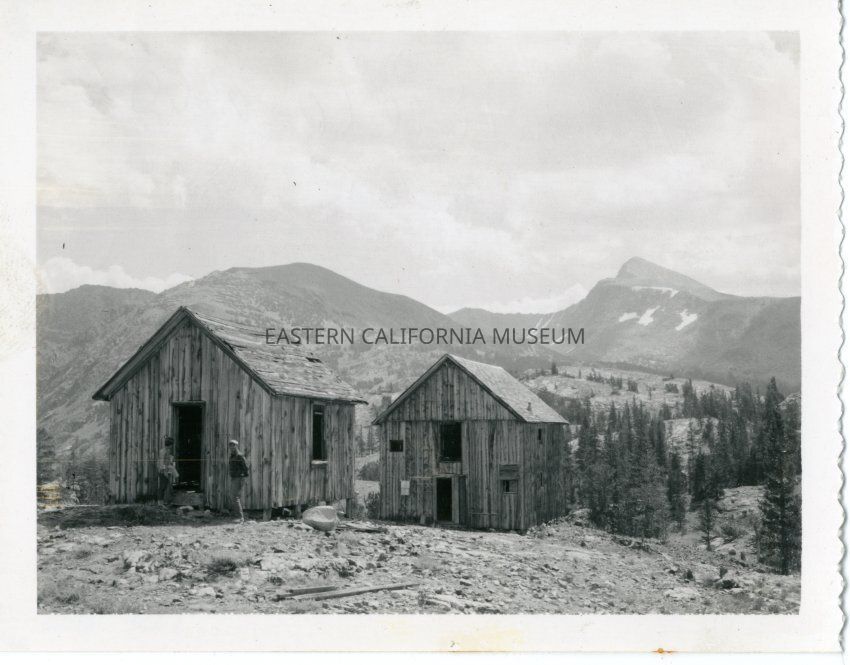 B&W glossy print: photo w/scalloped edges, old buildings at the Bennettville ghost town near Tioga Pass & Yosemite National Park