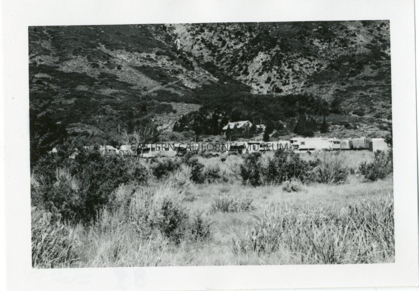 B&W glossy print: Silver Lake Campground in the background, numerous campers