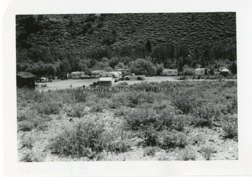 B&W glossy print: Silver Lake Campground; camp trailers and cars