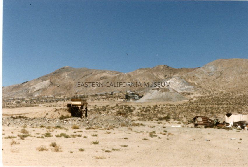 Backside text reads: Quintana ore dump - is about 2 miles North of Darwin. The "dump" is the one dump that the tram carried ore from Lucky Boy, Chrismas Gift & some of the smaller mines to be processed in a furnace at this dump. A few people live at Quintana