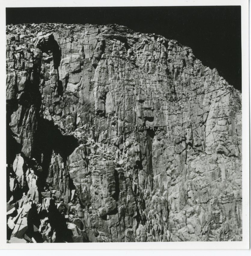 B&W glossy print: close-up of rockwall/cliffs