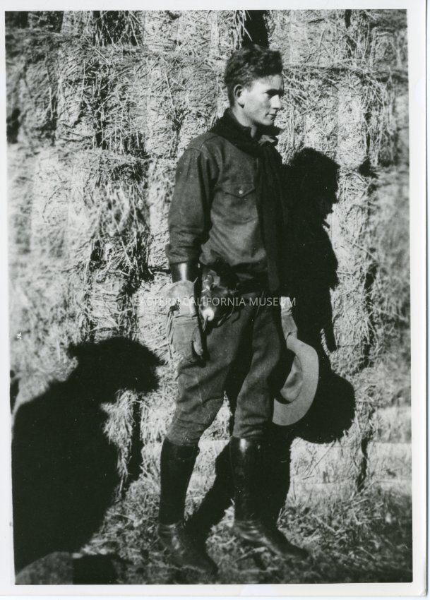 2/18-79: Truly yours in front of hay stock pile near corral in back of Brown house headquarters 1926(?) LHB