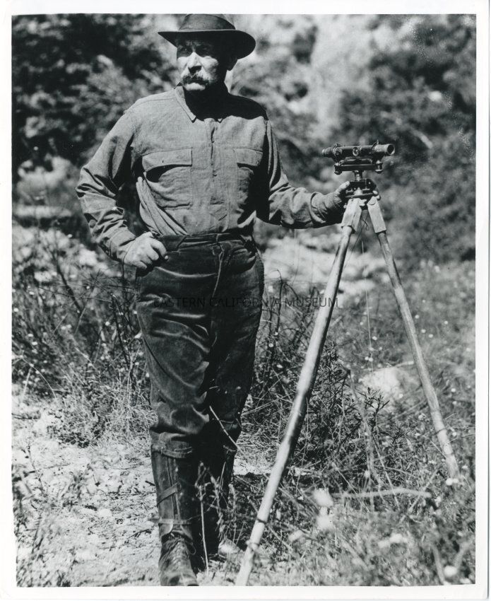 B&W glossy print: William Mulholland with his surveying equipment