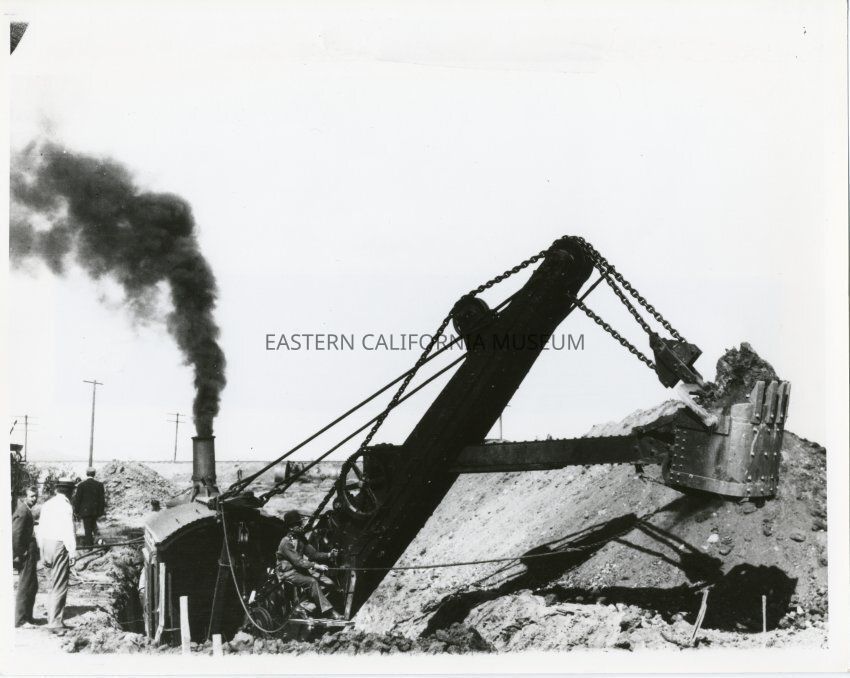B&W glossy print: large steam shovel machinery at work
