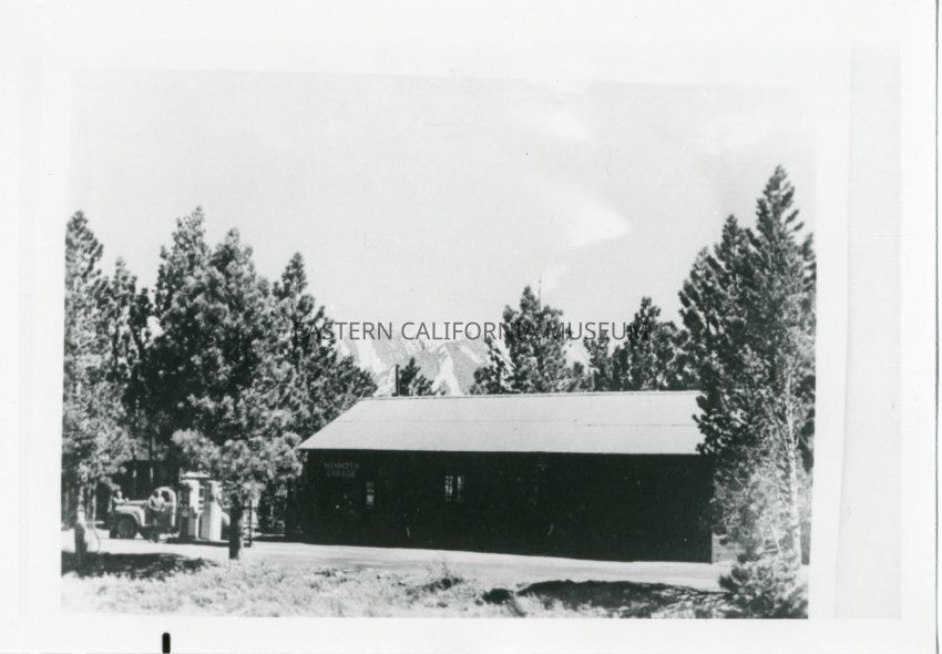 B&W glossy print: building with sign that reads "Mammoth Garage"