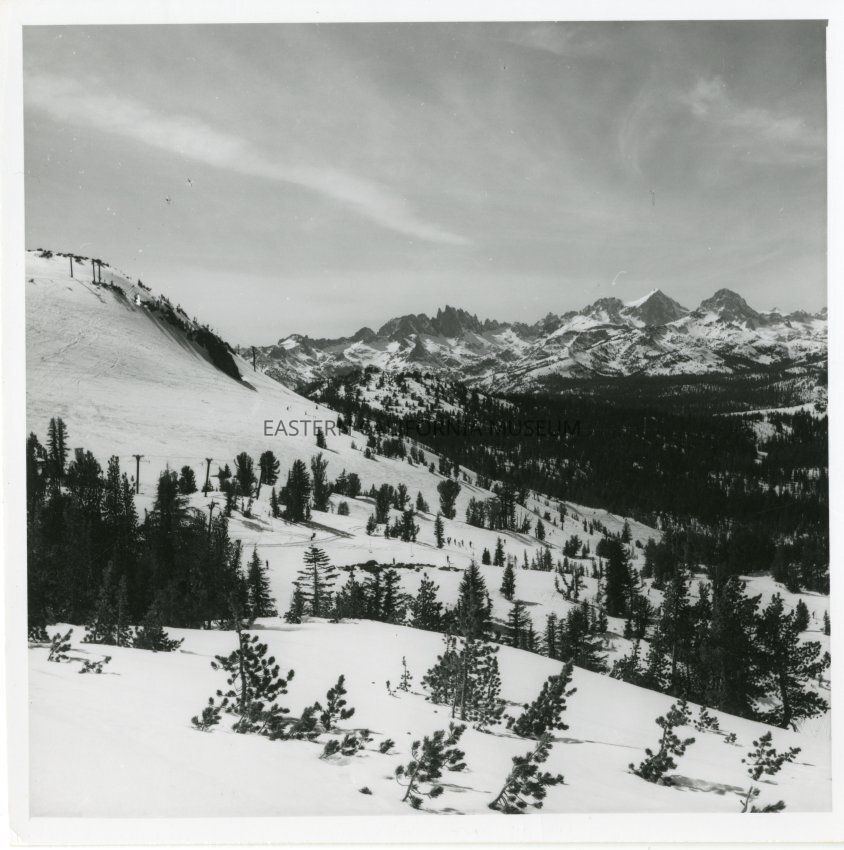 B&W glossy print: Mammoth Mountain Ski Area with Minarets in the background