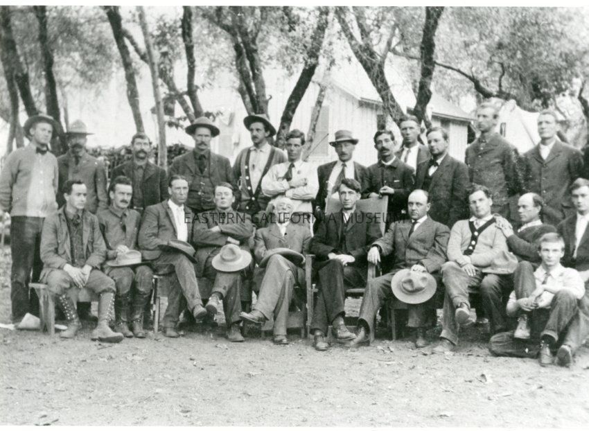 Sepia matte print: group of men half seated, half standing; see INF 916 & 917 for more information