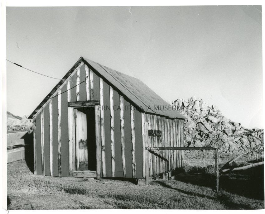 B&W glossy print: close-up shot of small building