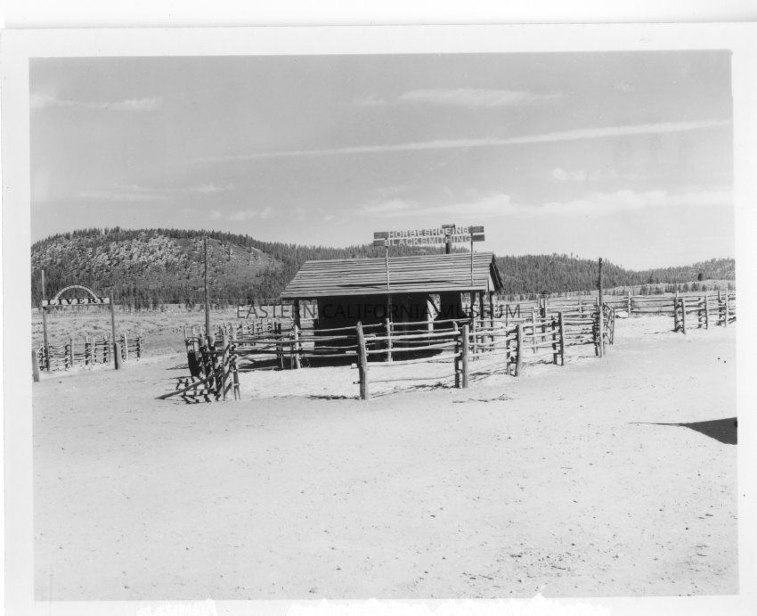B&W glossy print: unidentified cowboy Western movie set in the Mammoth Lakes area, West of highway 395