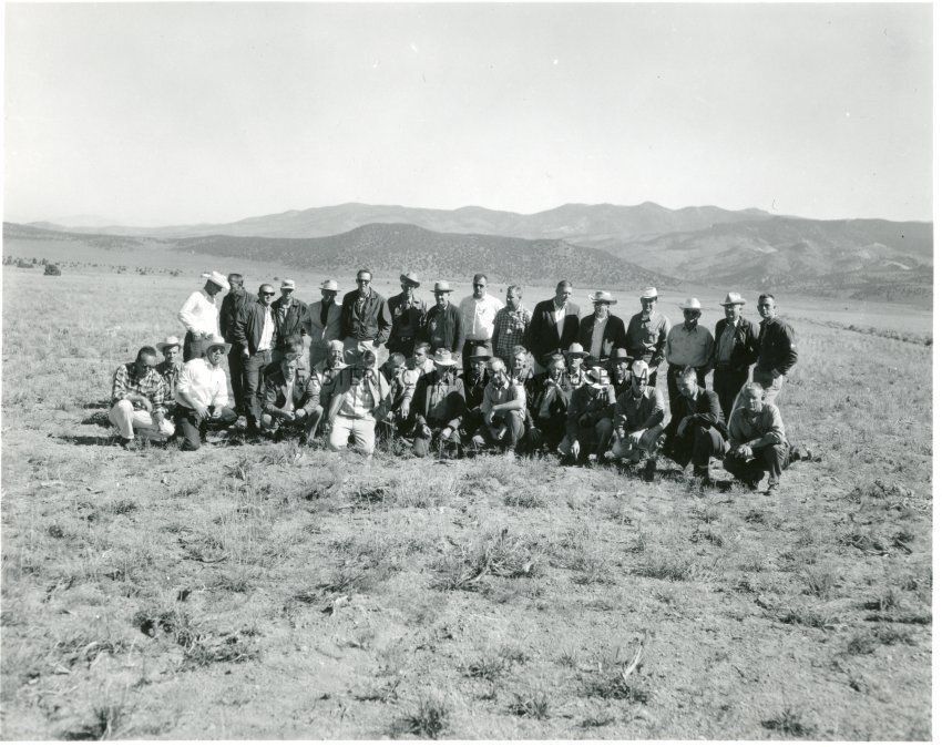 B&W glossy print: group shot of attendees at 9/61 meeting for American Society of Range Managers