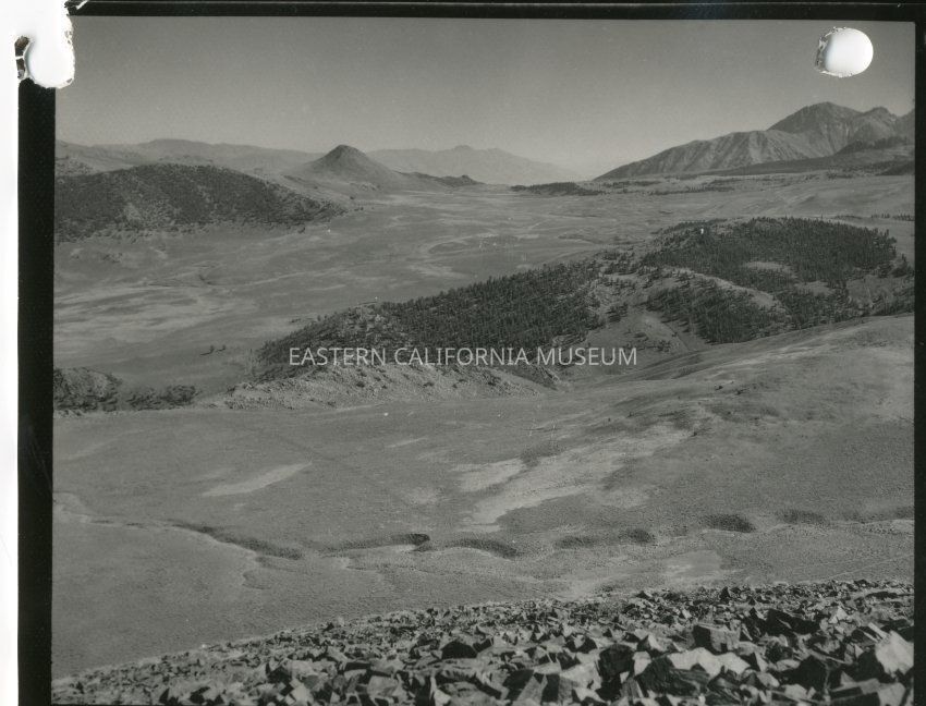 B&W glossy print: Coyote Flat; appears to be Mono Craters in the distance