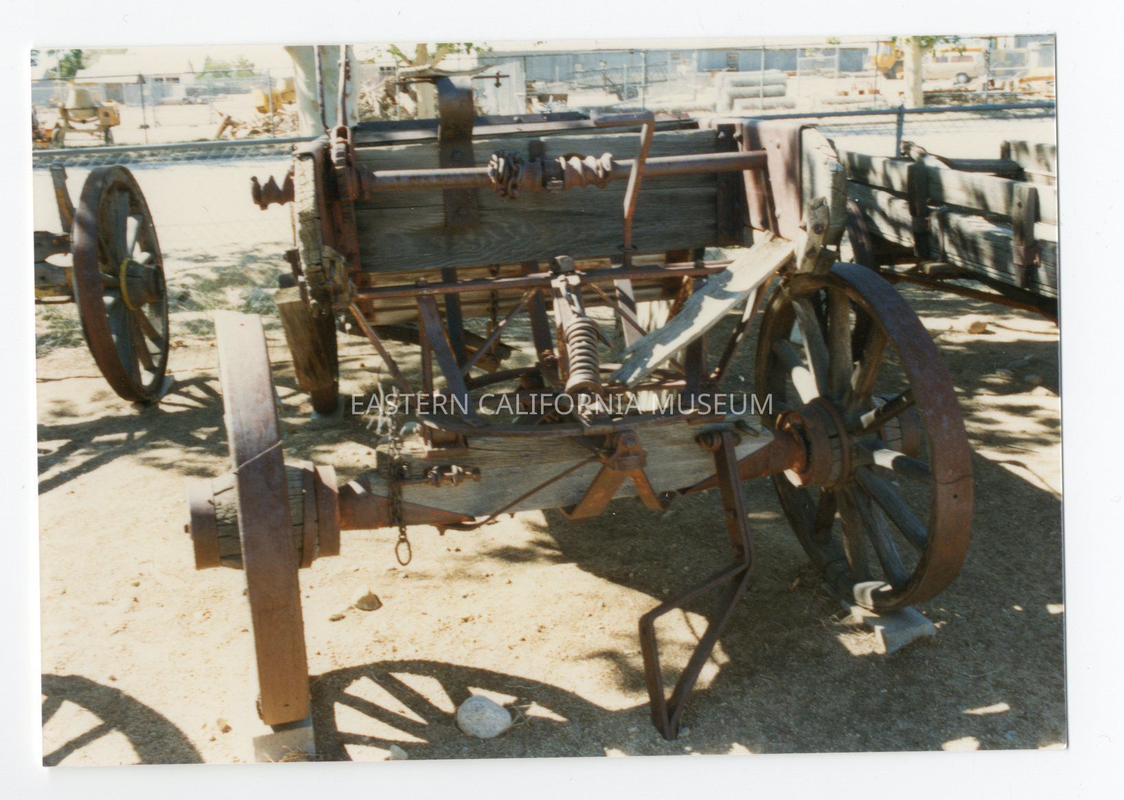 No. 6. Another view of No. 5. (Dump Wagon. The floor of the bed is in two sections. The sections were held together with lever-operated chains while the wagon was loaded with dirt or rocks. The wagon was then driven to the unloading spot where the chains were loosened to allows the bed floor sections to drop, "dumping" the load. The wagon's front wheels and bed front were engineered so it could navigate tight turns. A seat could be added. The dump wagon is similar, in principle, to the modern "belly dump" excavation vehicle.)