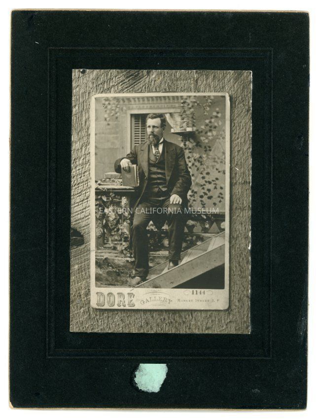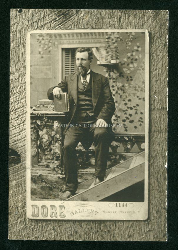 Mounted copy of a picture of a full-length studio portrait of Luther Henry Dearborn, Sr. Photographer of the original photo was Dore Gallery of San Francisco.
