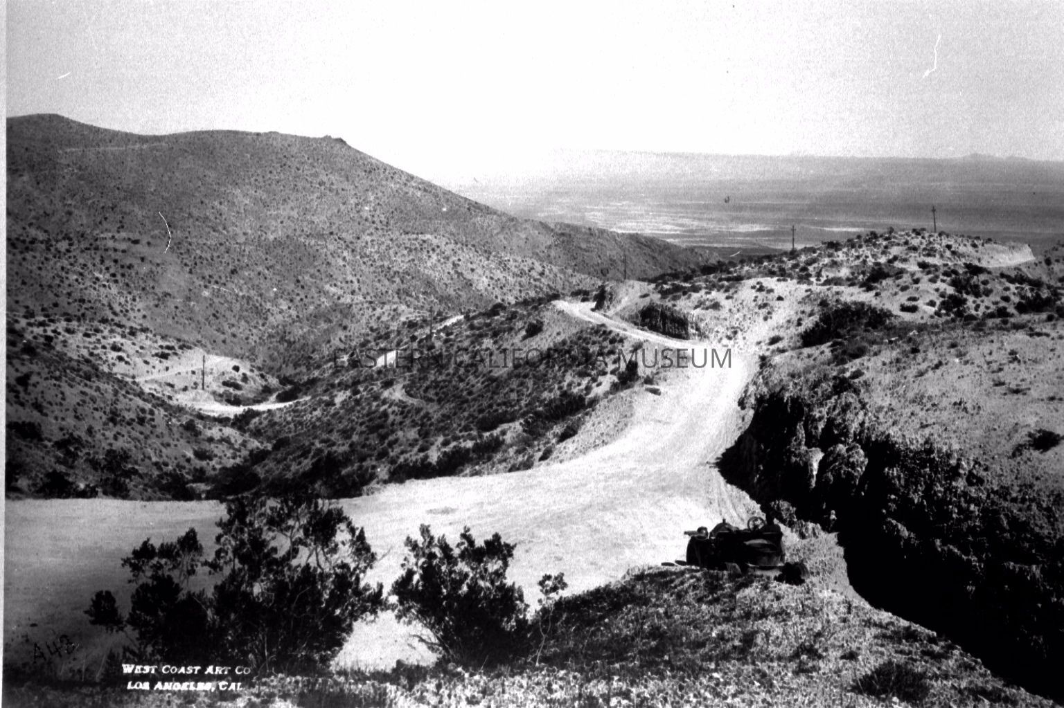 B & W digital scan of Road used to construct LA Aqueduct, Mojave Desert.