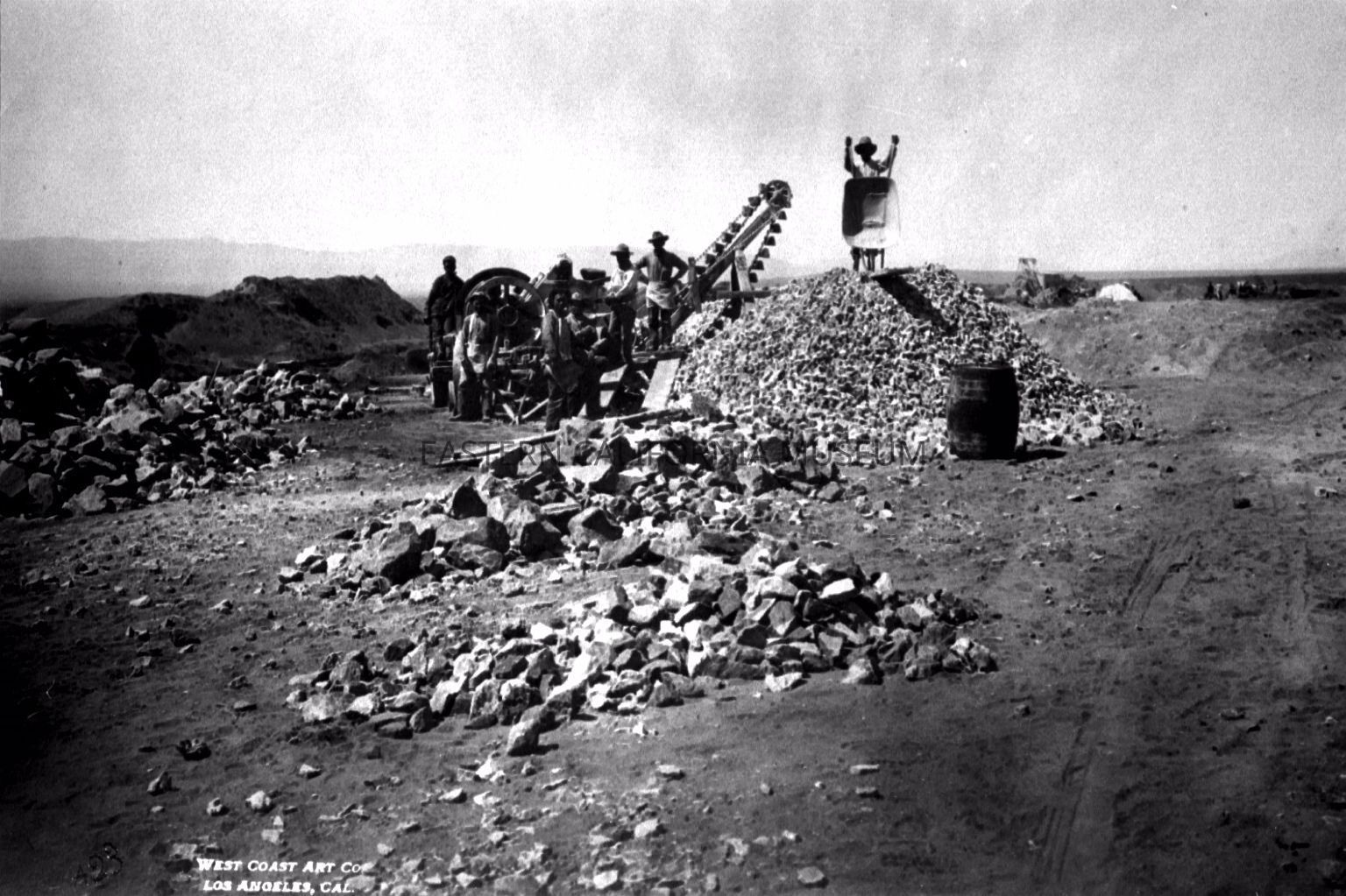 B & W digital scan of LADWP Laborers? moving and sorting rock .